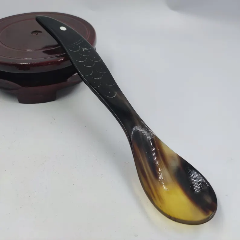 High Quality Natural Buffalo Horn Spoon for Caviar Egg Tea Sugar Salt and Pepper Tea and Coffee