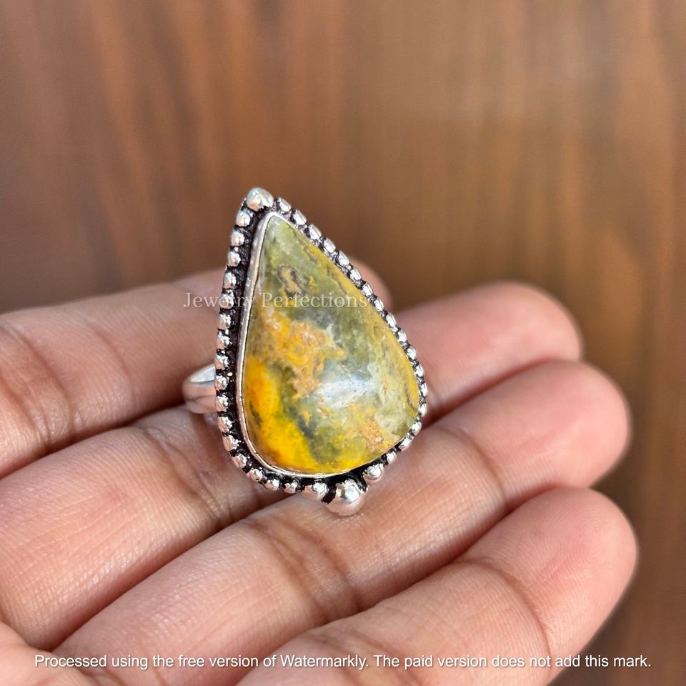 Natural Bumble bee Gemstones Silver Plated Brass Rings