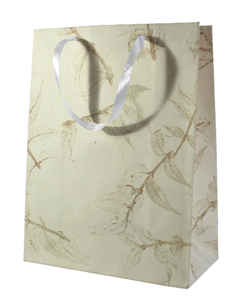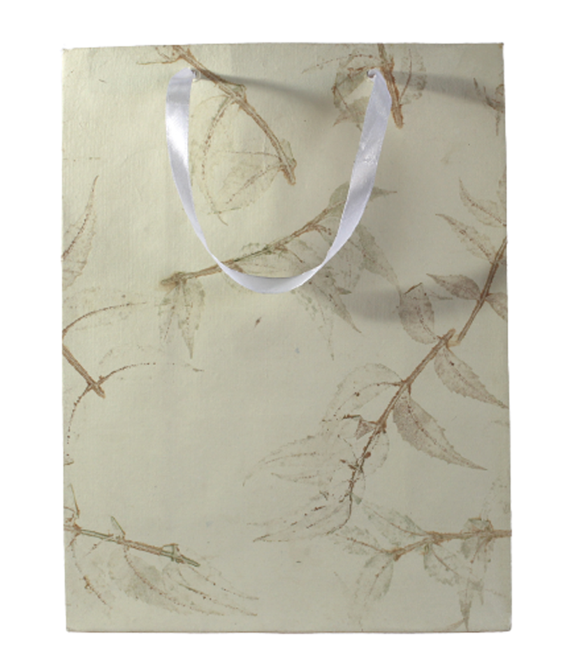 Handmade Cotton Art Paper Green Leaves Impressions High Quality Natural Satin Ribbon Handles for Shopping Bag Candle Photo Frame
