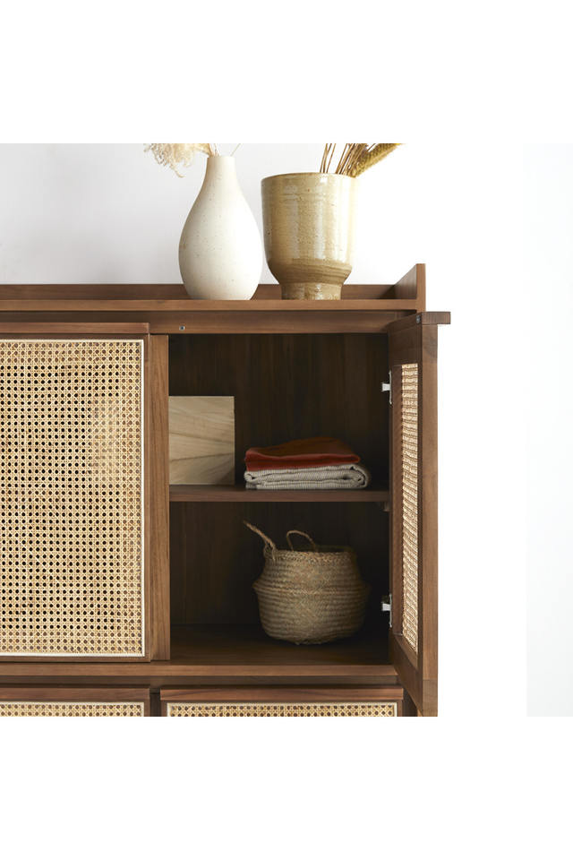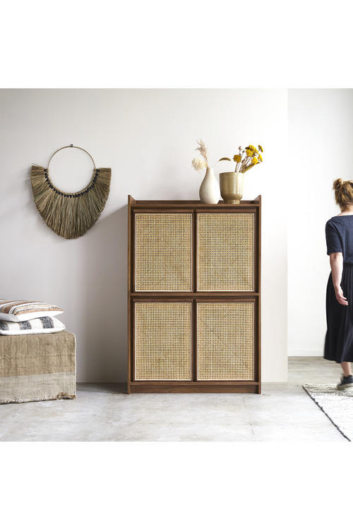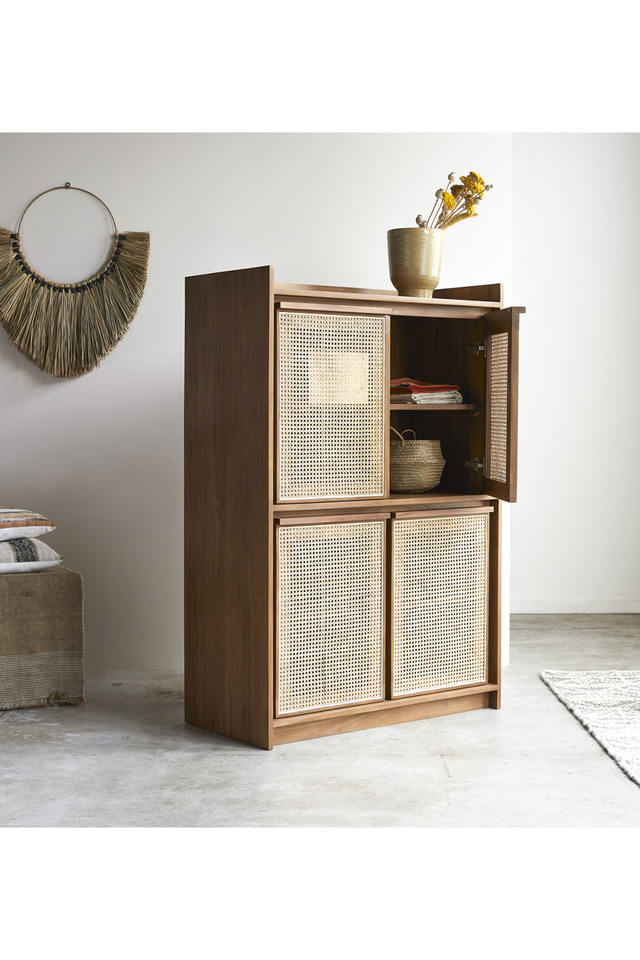 High Quality Natural Color Solid Wood Mahogany Teak Suar Rattan and Wicker Cabinet for Hotel and Villa with Cushion 141107
