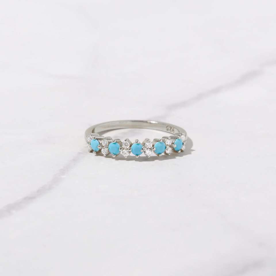 High Quality Natural Dainty Turquoise Gemstone 18K Gold Plated Solid 925 Sterling Silver Vintage Classic Prong Set Birthstone