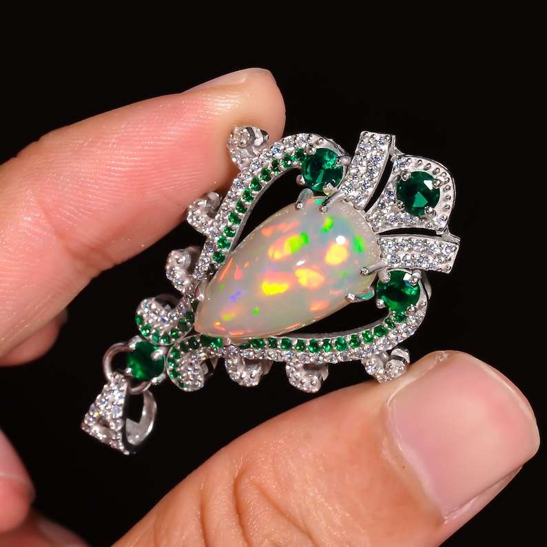 Keyword:Natural Ethiopian Opal Silver Pendant With Sparkling Opal Stones