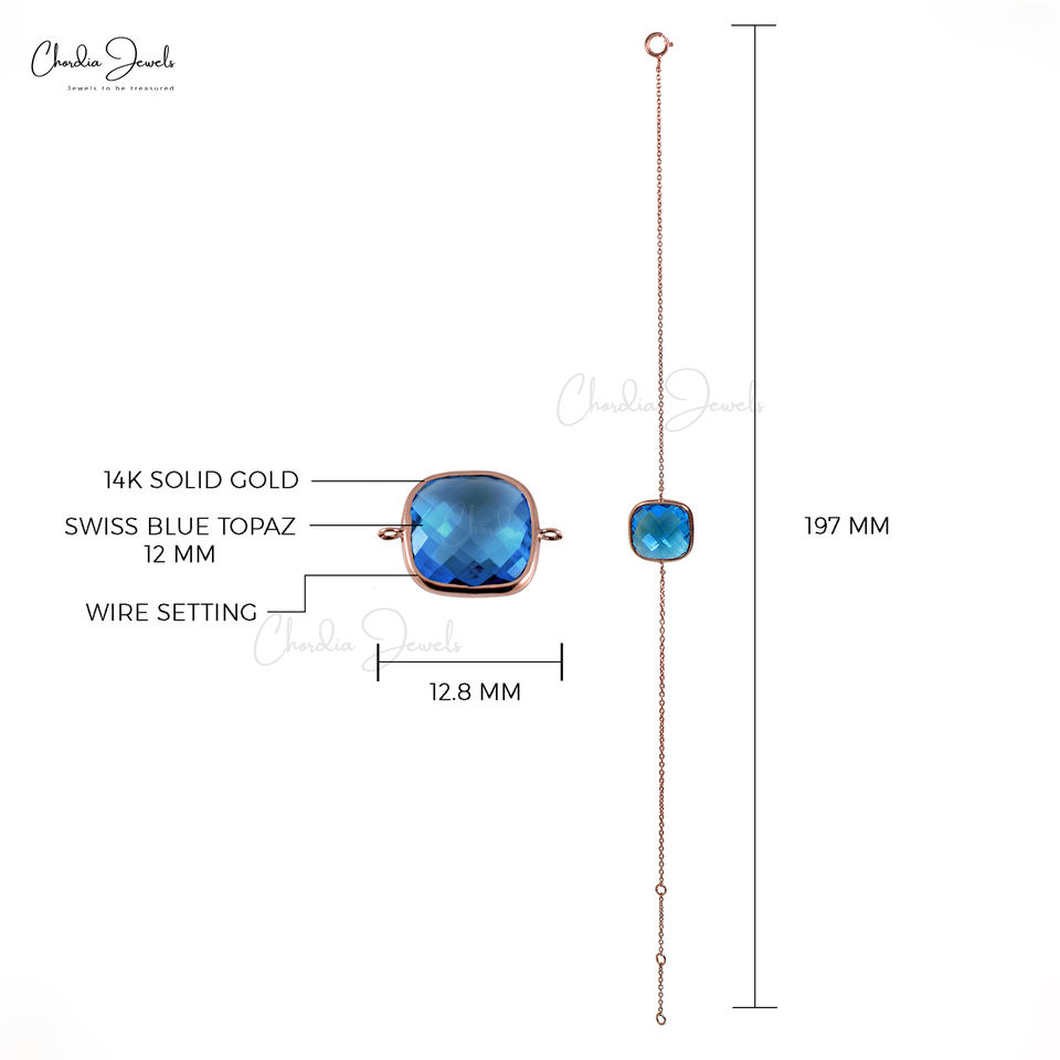 High Quality Natural Gemstone Swiss Blue Topaz 14k Rose Gold 12 mm Chain Bracelet Hallmarked Jewelry Manufacturer & Supplie