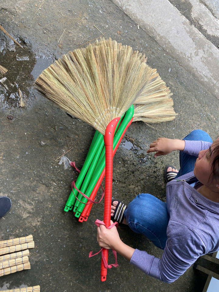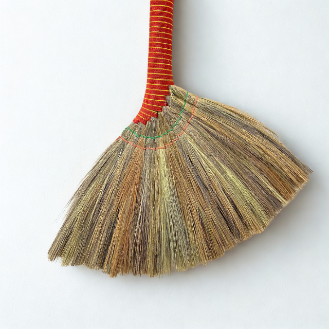 High-Quality Natural Grass Straw Broom, Lightweight Soft Sweeper with Plastic Handle for Floor, Yard & Patio