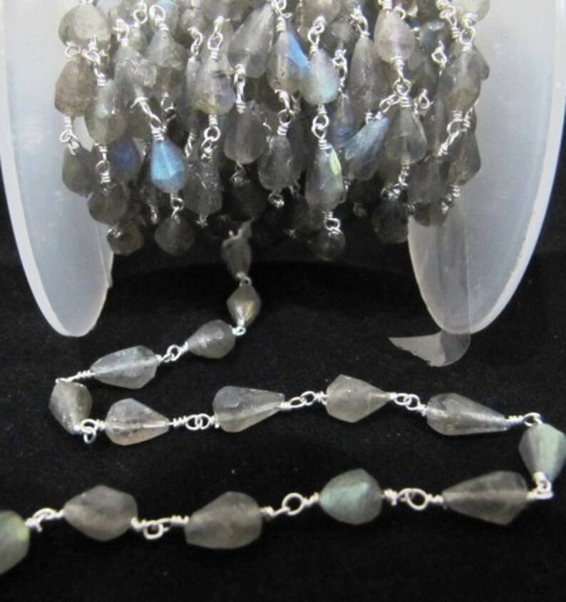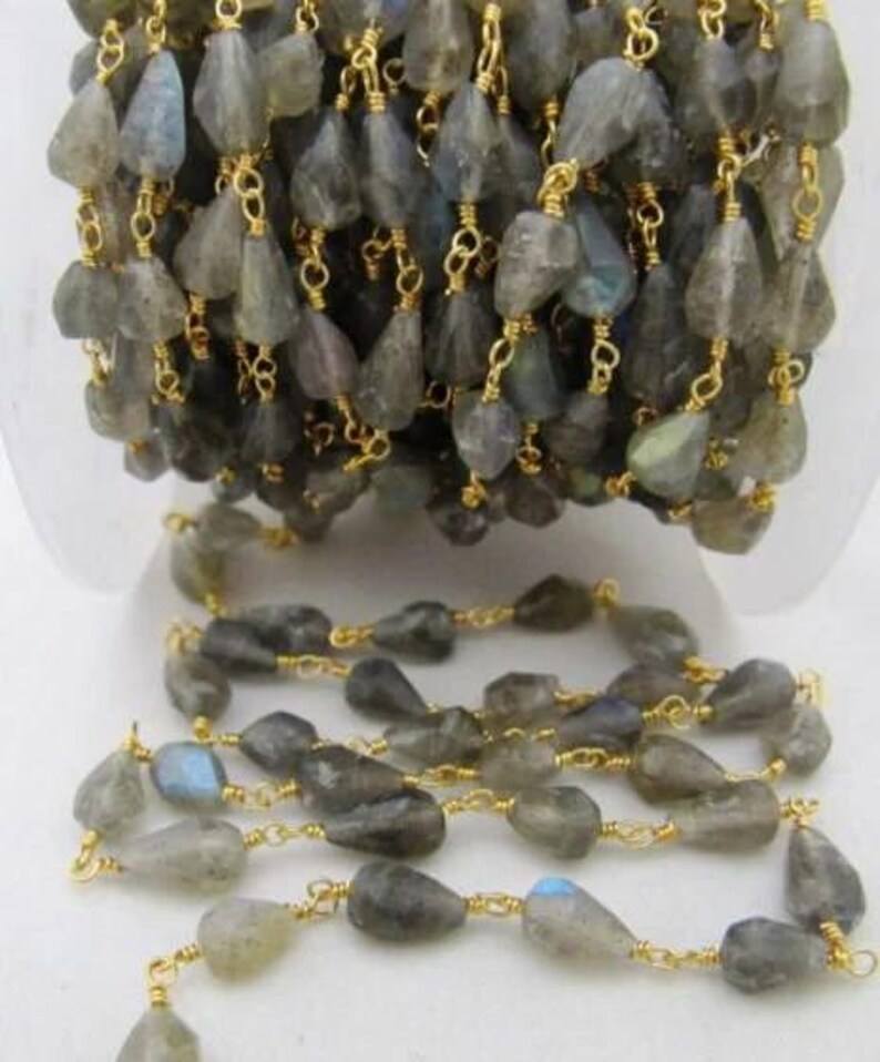 High Quality Natural Labradorite Rosary Chain Grey Beaded with Drop Faceted Gemstone for Jewelry Making