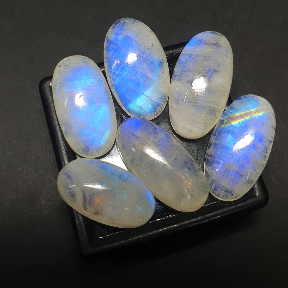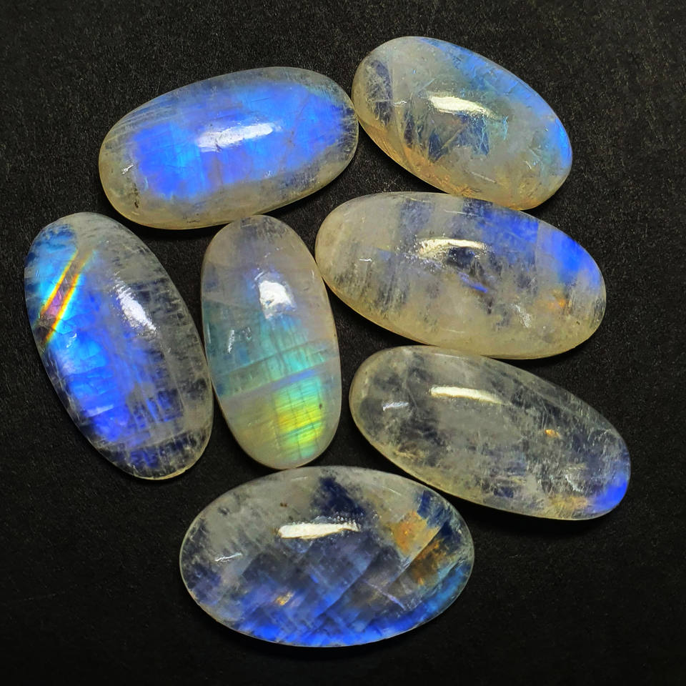 High Quality Natural Rainbow Moonstone 2-15mm Oval Cabochon 100 CT White & Grey Heat Treated Stone for Jewelry Making