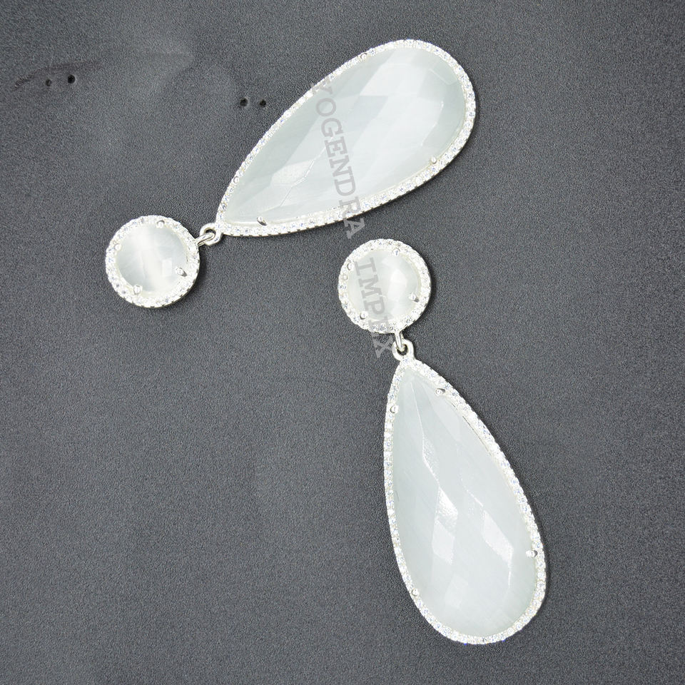 High Quality Natural White Monalisa Cz Gemstone Sterling Silver Stud Earrings Designer Drop for Engagement Wholesale Supply
