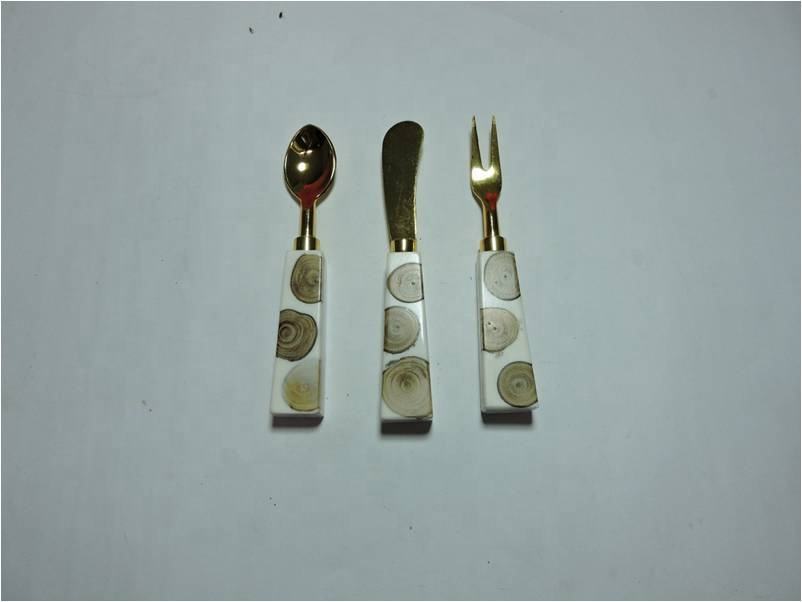 High Quality Natural Wood Resin Handle Steel Spoon Fork Cutlery Set Vintage Design Best Flatware Homeware Cheese Set Parties