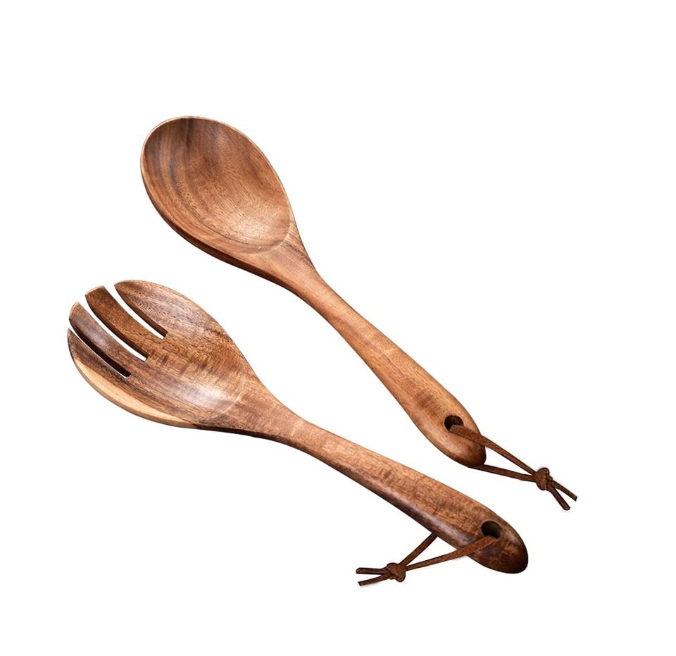 High Quality Natural Wood Spoon Salad Servers Set Wooden Salad Spoon Salad Fork Shape for Customized Price