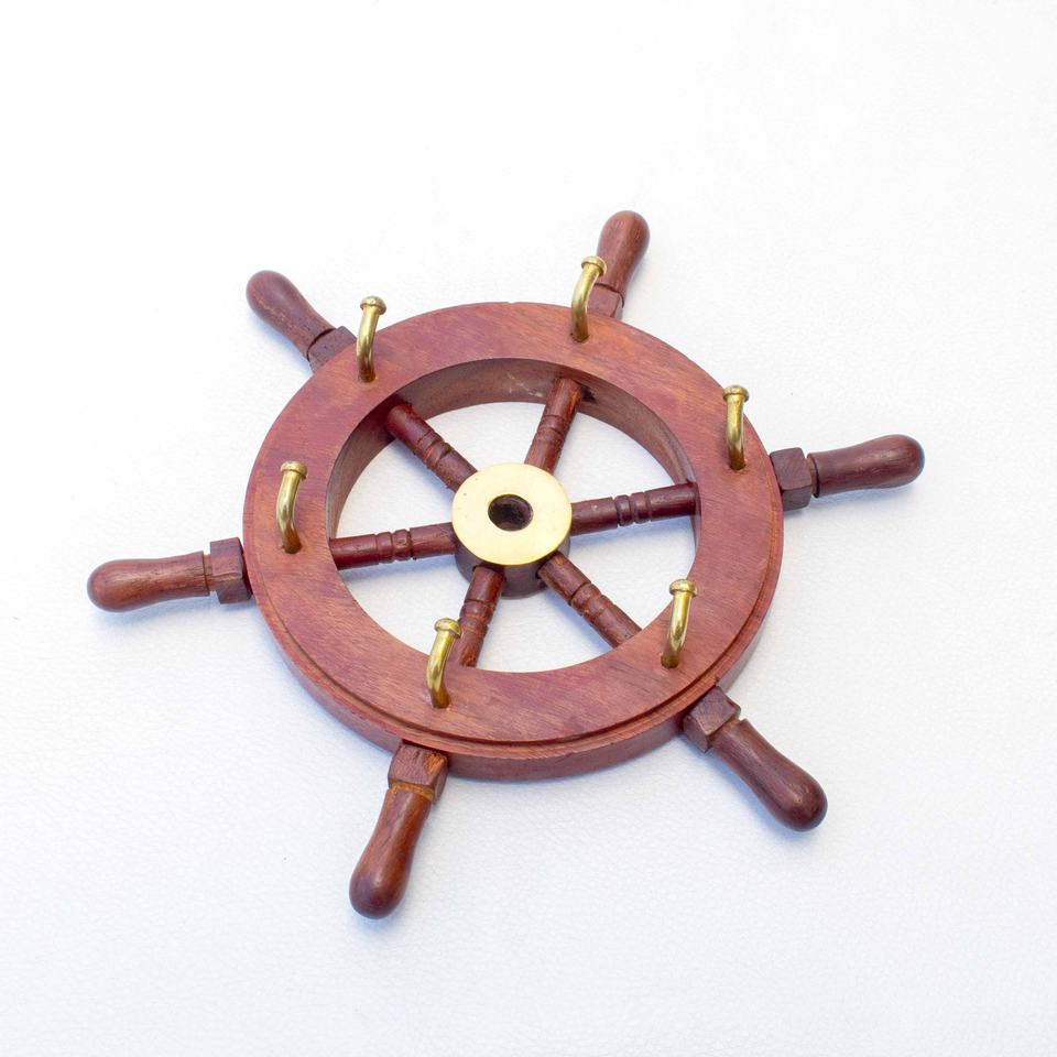 High Quality Handmade Durable Nautical Antique Vintage Wooden Keychain Hanger Home Decoration Sailor Wheel Hook for Carabiner