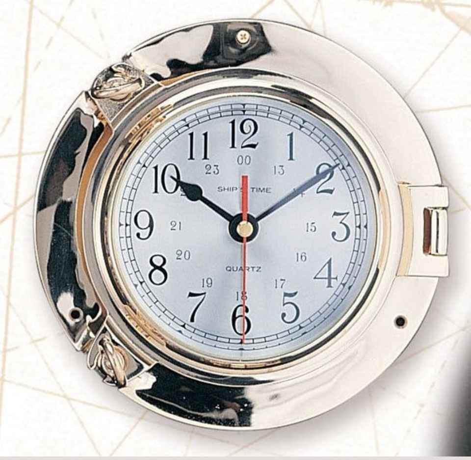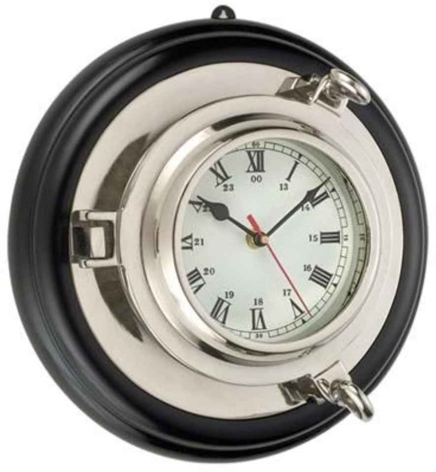 High Quality Nautical Brass Wood Porthole Wall Clock Unique Art Design Style Quartz Movement Needle Display Radio Wholesale