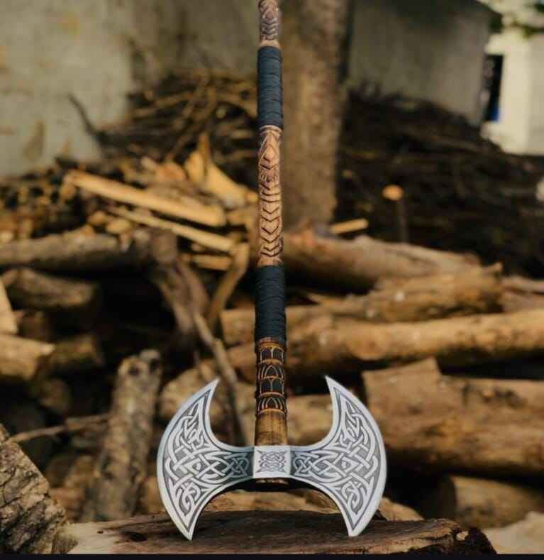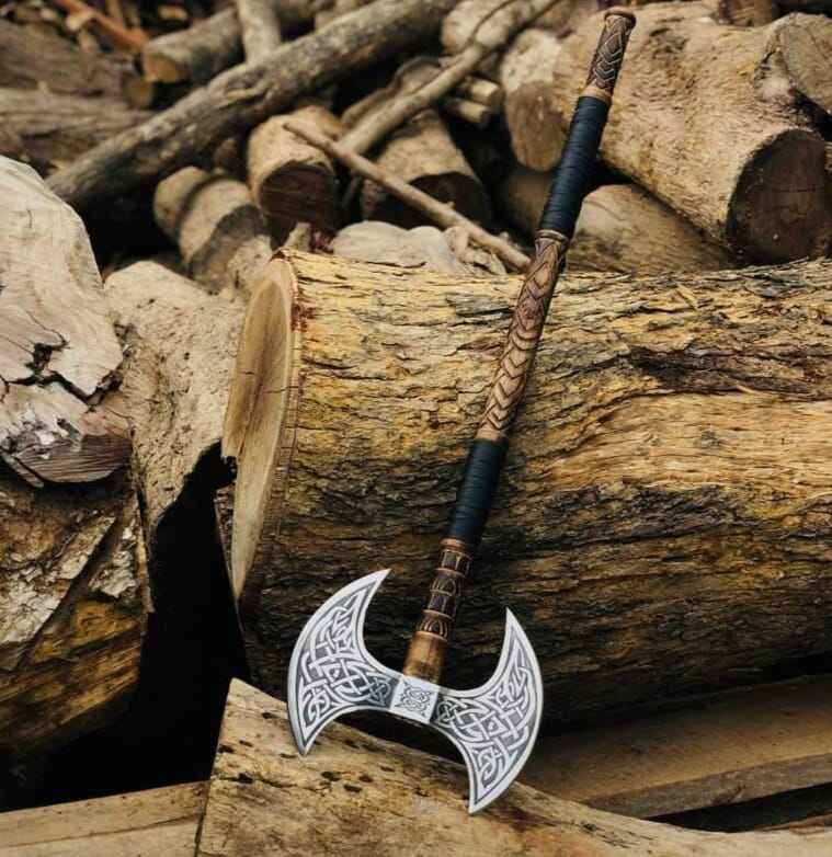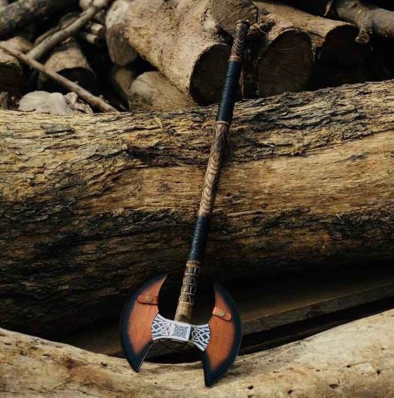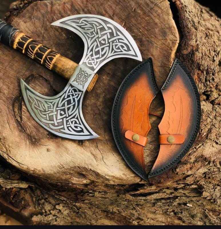 High Quality New Design Camping High Carbon Steel Double Headed Axe Hatchet For Sale Outdoor Carbon with Fine Leather Sheath