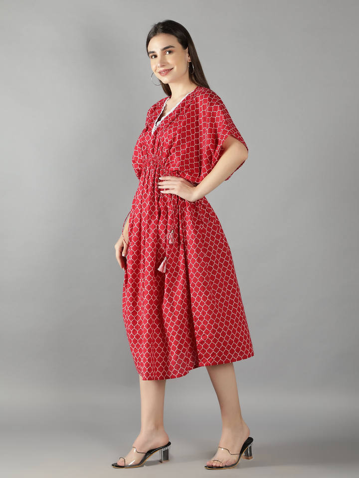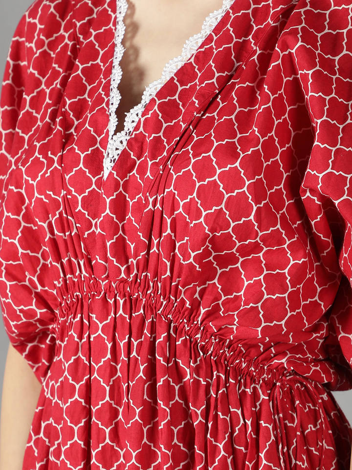 Product Name:Geometric Lava Red kaftan Dress