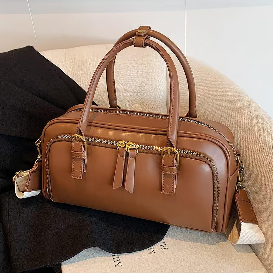 High Quality New Luxury PU Leather Women's Handbag Casual Fashion Wide Strap Pillow Shaped Bag Bowling Bag