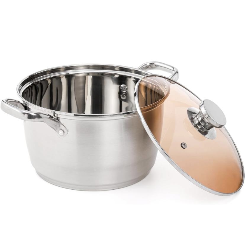 24x6cm Stainless Steel Casserole Dish Set with Handles 25L Capacity Glass Lid for Home Cooking & Soup Pot Use