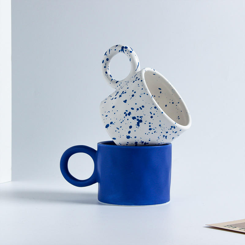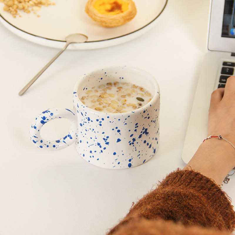 High Quality Nordic Mugs Ceramic Splash-Ink Large Capacity Simple Indoor Study Office Milk Tea Coffee Mugs