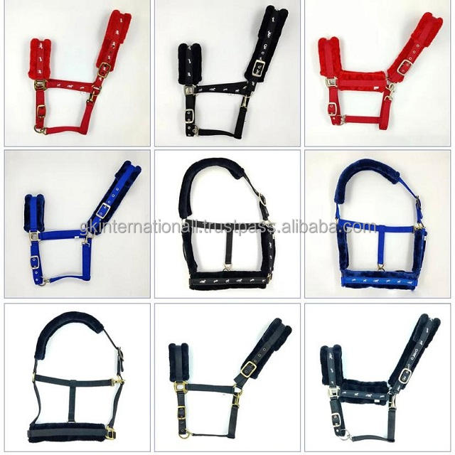 High Quality Nylon Horse Halter With Fur Mink Fleece Padding SS Buckles SS Eyelets & Horse Ribbon on All Sides in Vibrant Colors