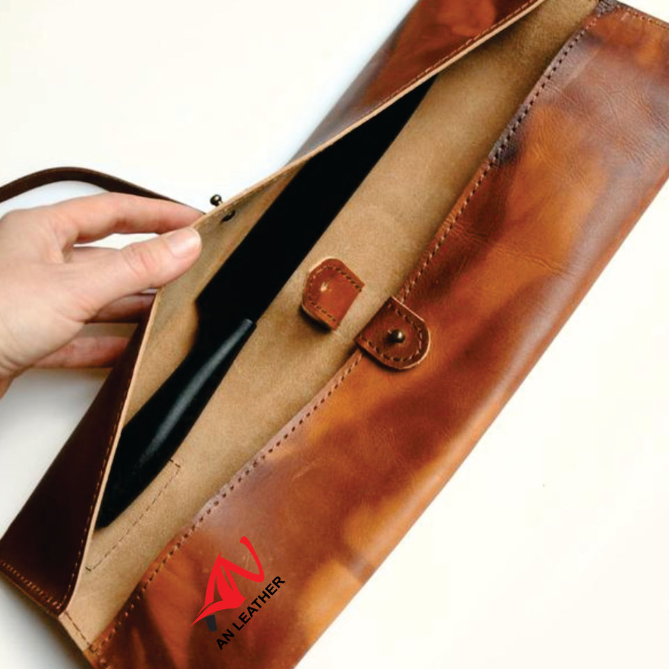 High Quality OEM Chef Knife Pouch Professional Custom Leather Tool Bag With Button Closure And Roll Up Laces Around Pouch