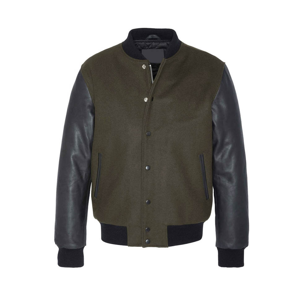 High Quality OEM Custom Leather Sleeve Chenille Embroidery Bomber Flight Baseball Team Vintage Letterman Varsity Jacket for man