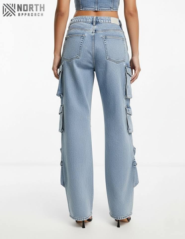 High Quality Oem Denim Parker Pants For Women Acid Washed Box Pockets Low Waist Hip Hop Fashion Flared Oversized Trousers