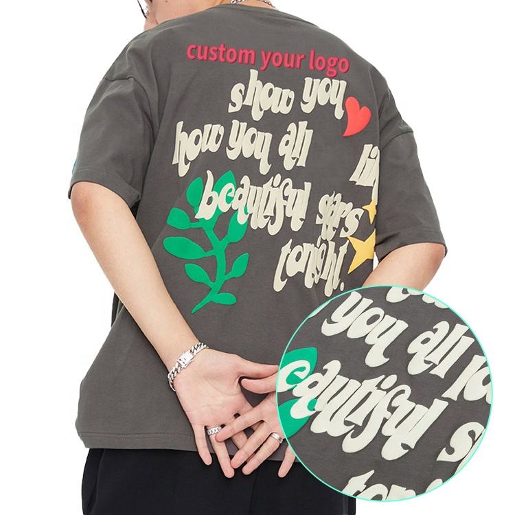 High Quality Oem Heavy Tee Shirt Puff Printed 3D 100% Plain Cotton Men Puff Print Tshirts With Logo Custom Logo Printed