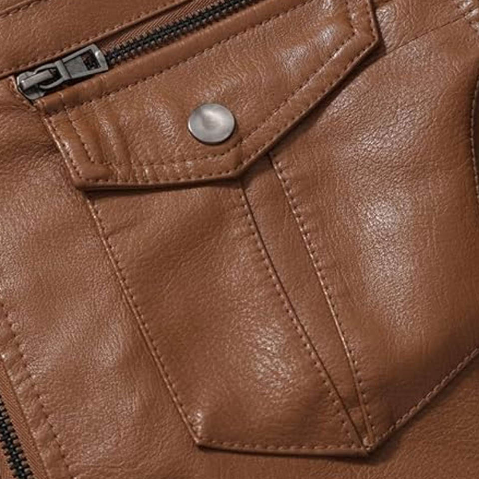 High Quality Oem Service Custom Fashion Men Collar Brown Solid Color Genuine Leather Jackets For Men