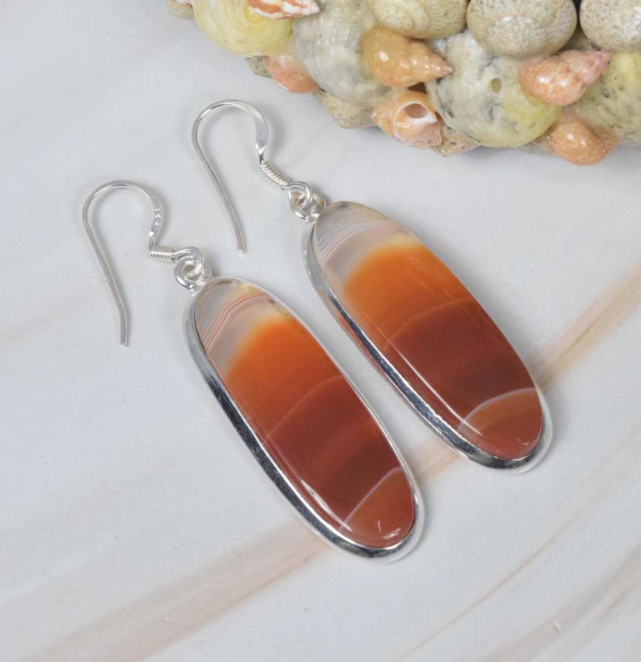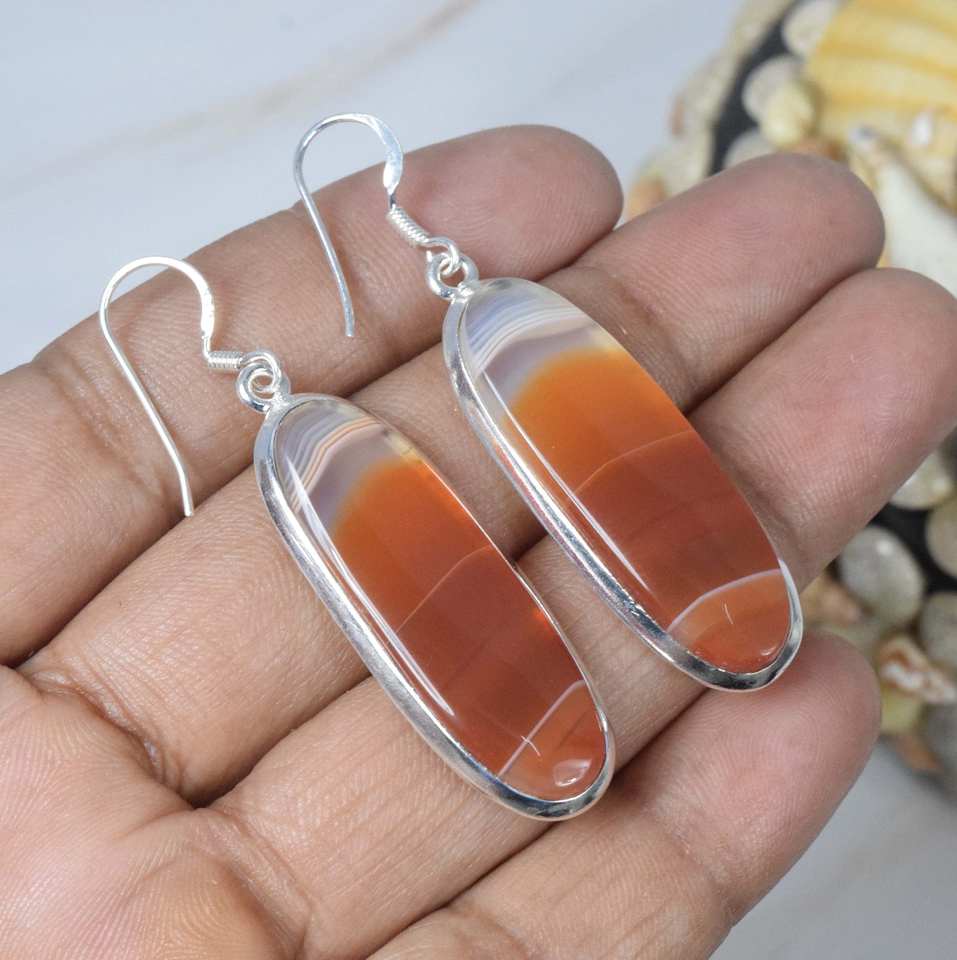 High Quality Orange Botswana Agate 925 Sterling Silver Long Earring Handmade Jewelry Botswana Agate Earring Gift for Christmas