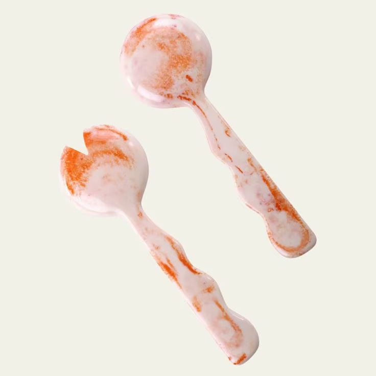 High Quality Orange Resin Salad Server Set Wavy Handle Latest Kitchen Dishware Acrylic Serving Spoon Catering Tool Accessory