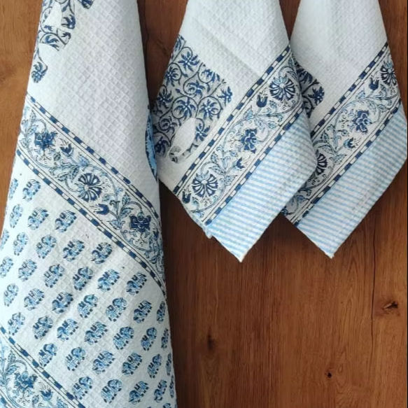 High Quality Organic Cotton Hand Block Print Bath Beach and Spa Towel Set Waffle Fabric with Hand Print Design