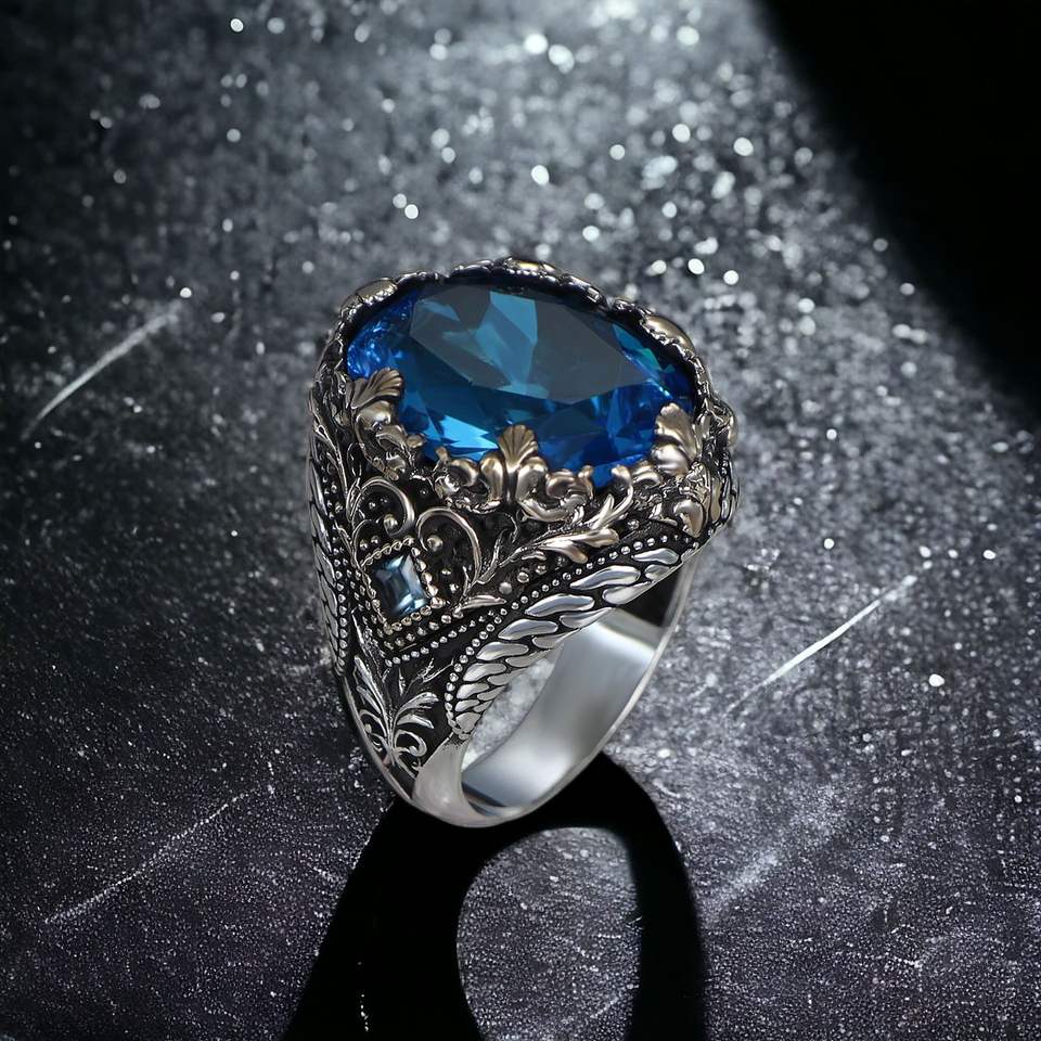 High Quality Ottoman Style 925 Sterling Silver Men's Ring Fashion Jewelry Natural Black Stone Turkish Made Azuris VALKH1641