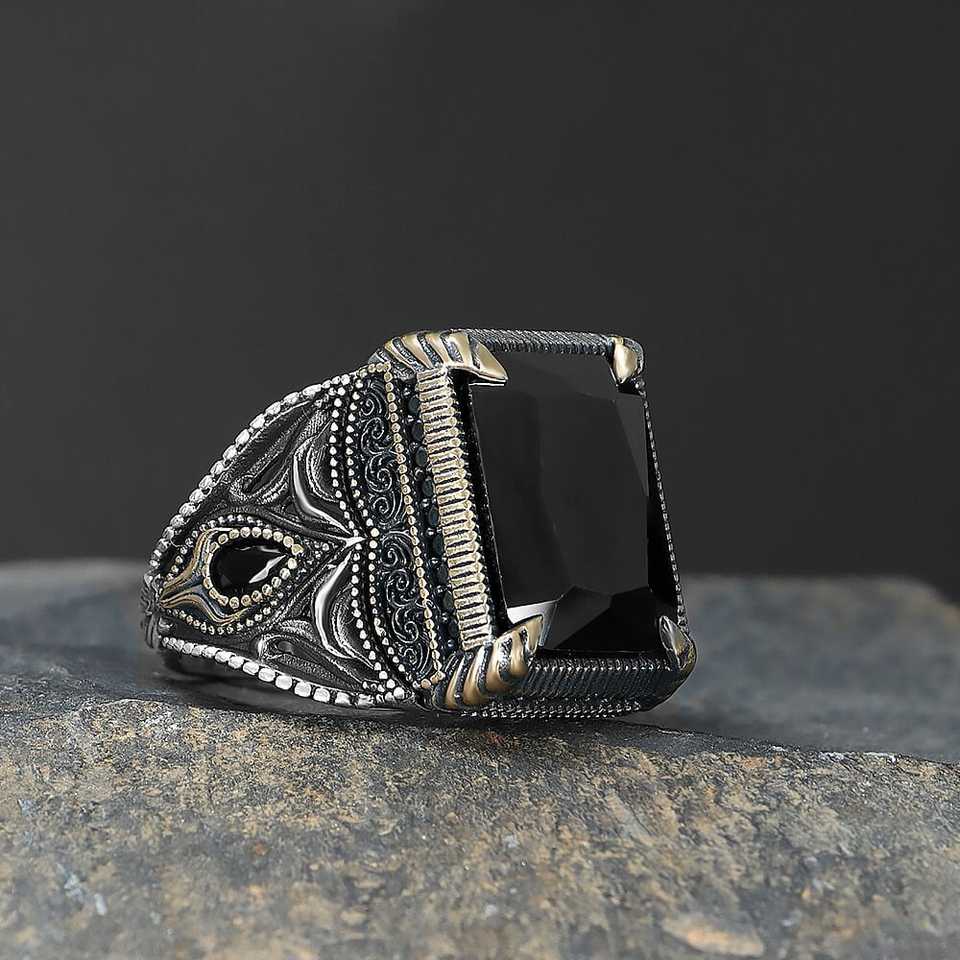 High Quality Ottoman Style 925 Sterling Silver Men's Ring Azuris VALKH1868 Natural Stone Turkish Fashion Jewelry