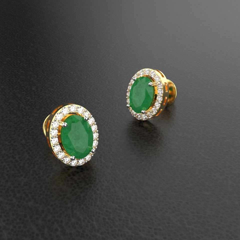 High Quality Oval Shape Emerald Stone Studded Earrings For Women And Girls Side Lab Grown Diamonds Around Oval Cut Emerald