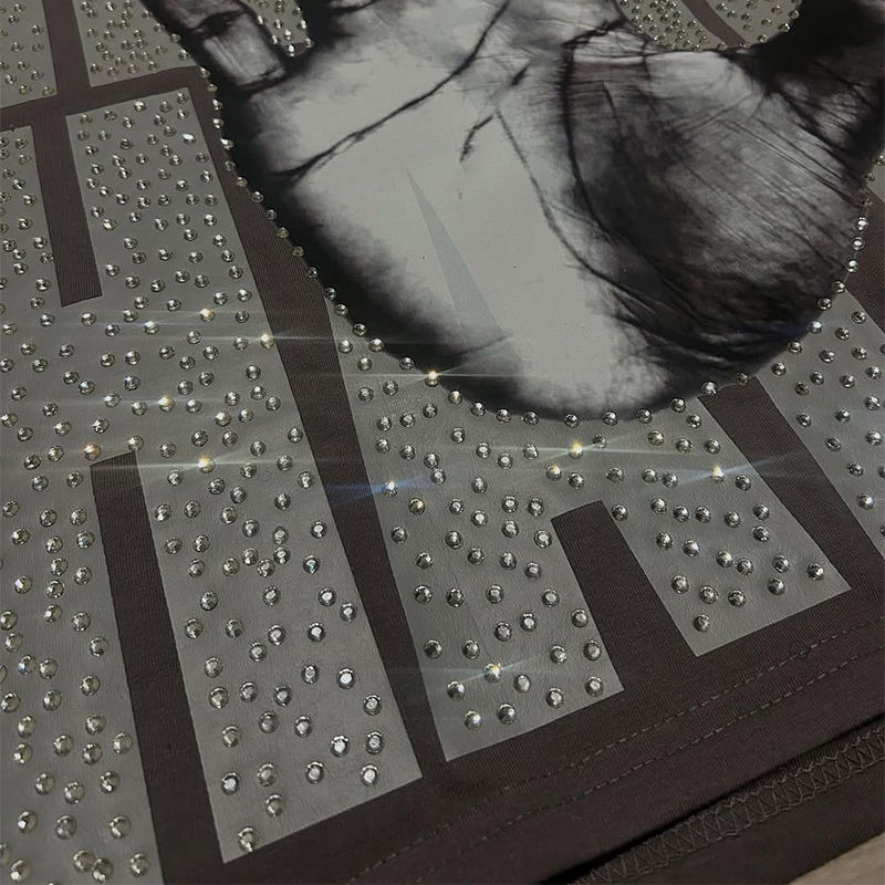 High Quality Oversize Boxy Cropped T Shirt For Men Hip Hop Style Graphic Tee With Distressed Hem Rhinestone Transfer Streetwear