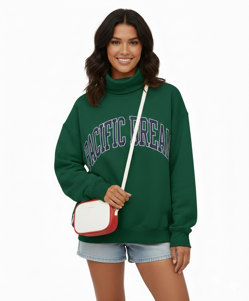 High Quality Oversized Reversible Mock Neck Long Sleeve Pullover Sweatshirt for Women Custom Logo Letter Printed Sweatshirt