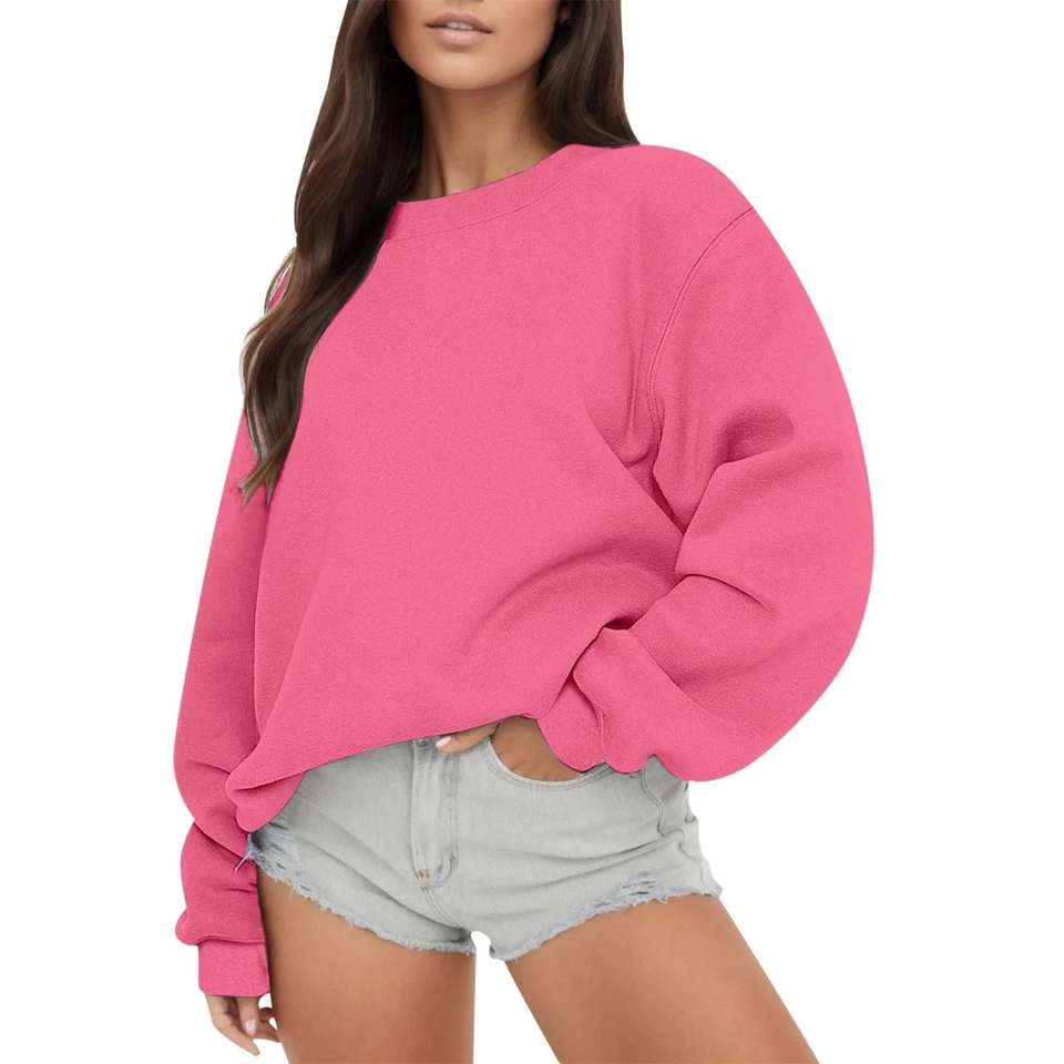 High Quality Oversized Women's Pink Sweatshirt 100% Cotton 350GSM Crew Neck Pullover Sweatshirt with Customize Logo Streetwear