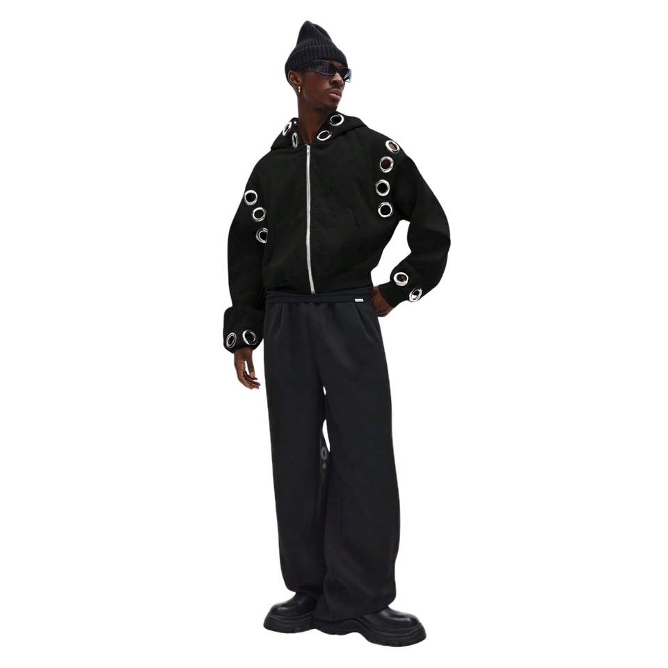 Men Metal Eyelets Hoodies