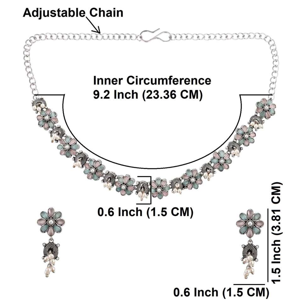 Oxidized Antique Silver Tone Choker Necklace Earrings Jewelry Set