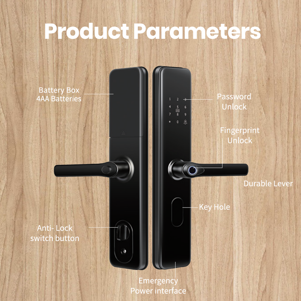 High Quality P02 Tuya Smart Door Lock with Biometric Digital Fingerprint Electronic Password Handle for Wood Door Key