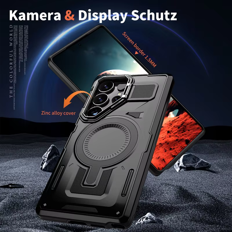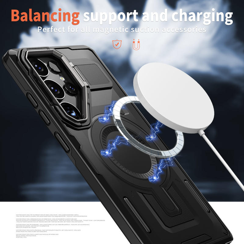 High Quality PC + TPU Phone Case Zinc Alloy Metal Camera Frame Magnetic Ring Holder Wireless Charge Armor Design Shockproof for