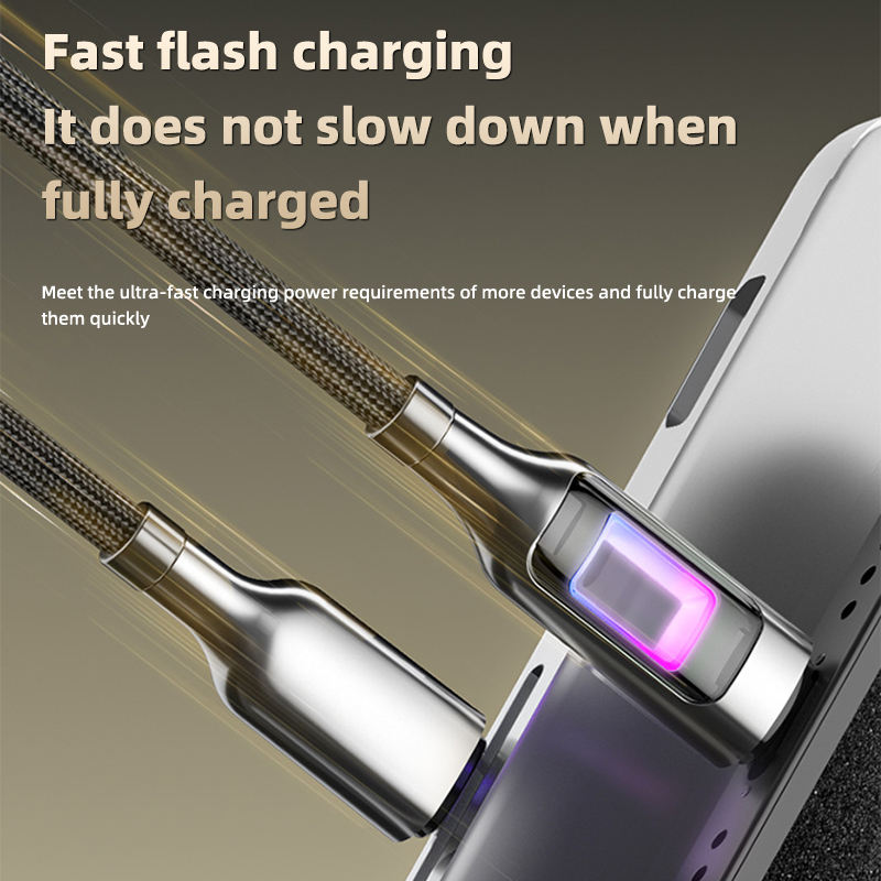 High Quality PD 100W Fast Charging Type-C Data Cable with LED Breathing Light 5A Zinc Alloy Eco-Friendly for Phone Laptop