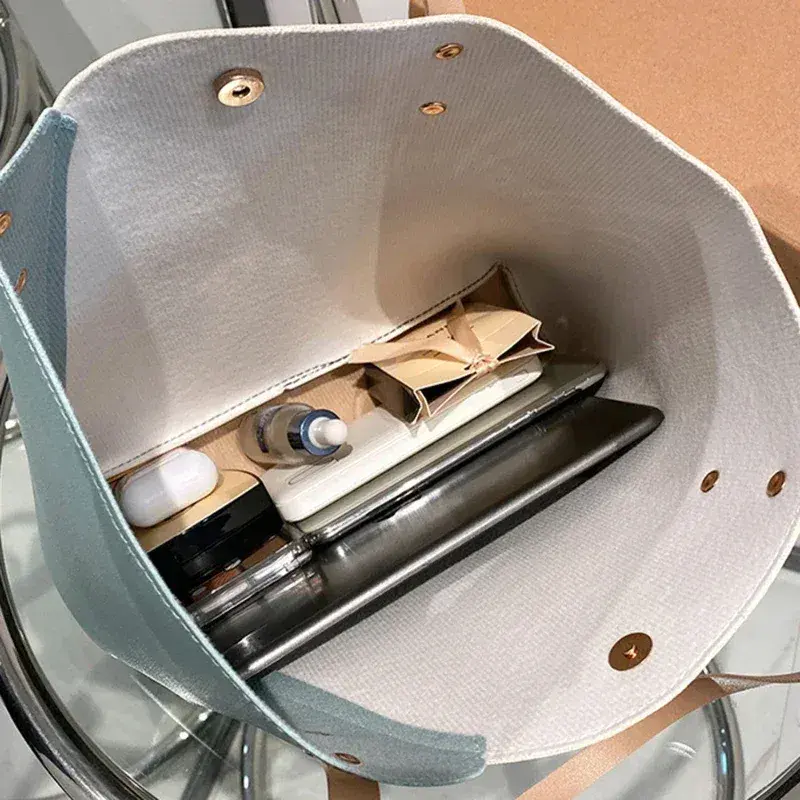 High Quality PU Leather Women's Handbag Large Capacity Patchwork Color Shoulder Bag Button Closure Fashionable Wild Style Canvas