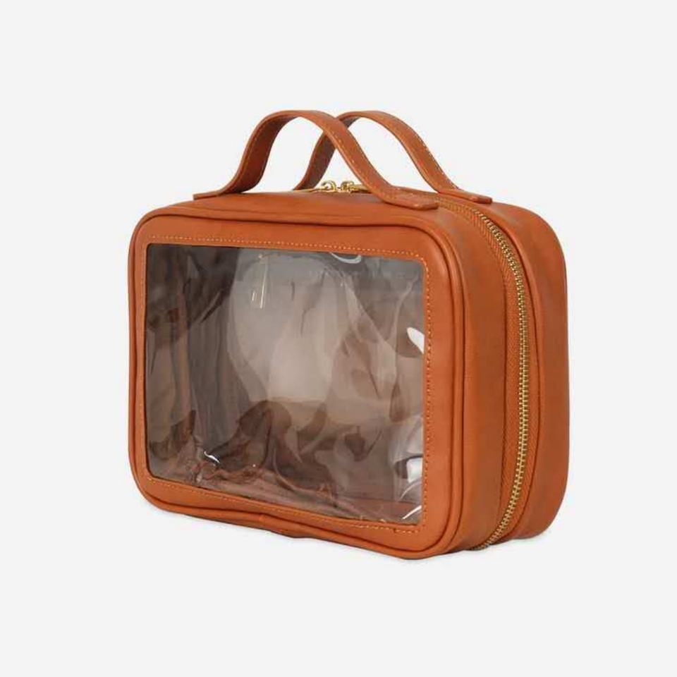 High Quality PU Makeup Bag See Through PVC Cosmetic Bag with Handle Embossed Logo Zipper Pouch