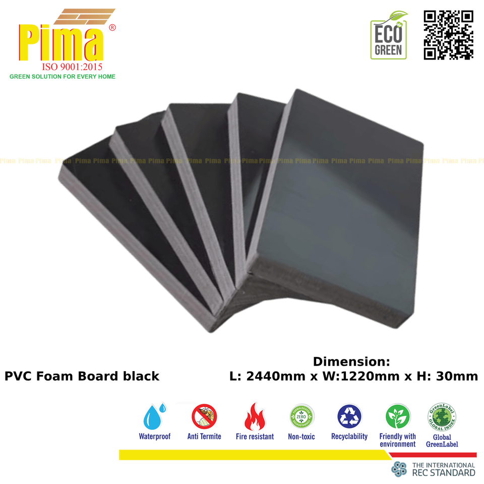 High Quality PVC WPC Foam Panels for Indoor Cladding 30mm Thickness 0.6 G/cm3 Density Black Color Smooth Furniture Doors Kitchen