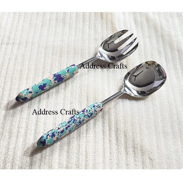 High Quality PVD Gold Plated Salad Server Set Kitchenware Premium Salad Spoon Set With Resin Handle Serving Spoon Fork Cutlery
