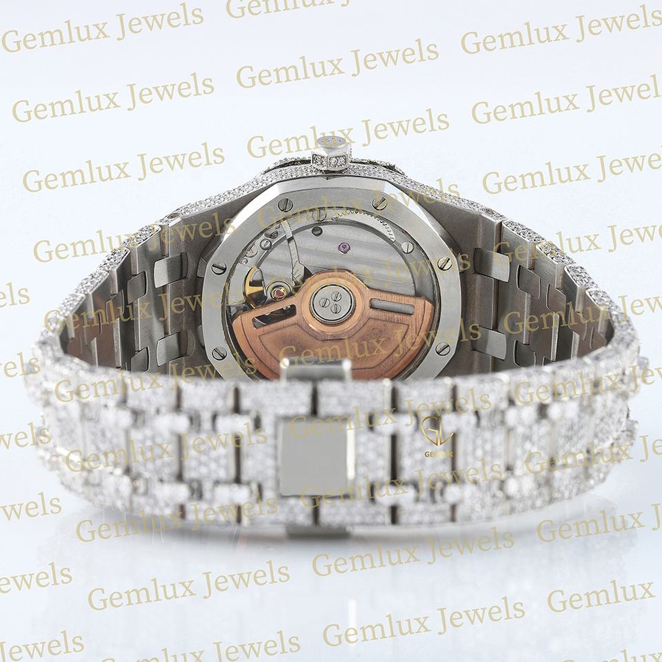 High Quality Pass Diamond Tester Automatic Movement Arabic Dial D VVS Fully Iced Out Moissanite Diamond Full White Hip Hop Watch