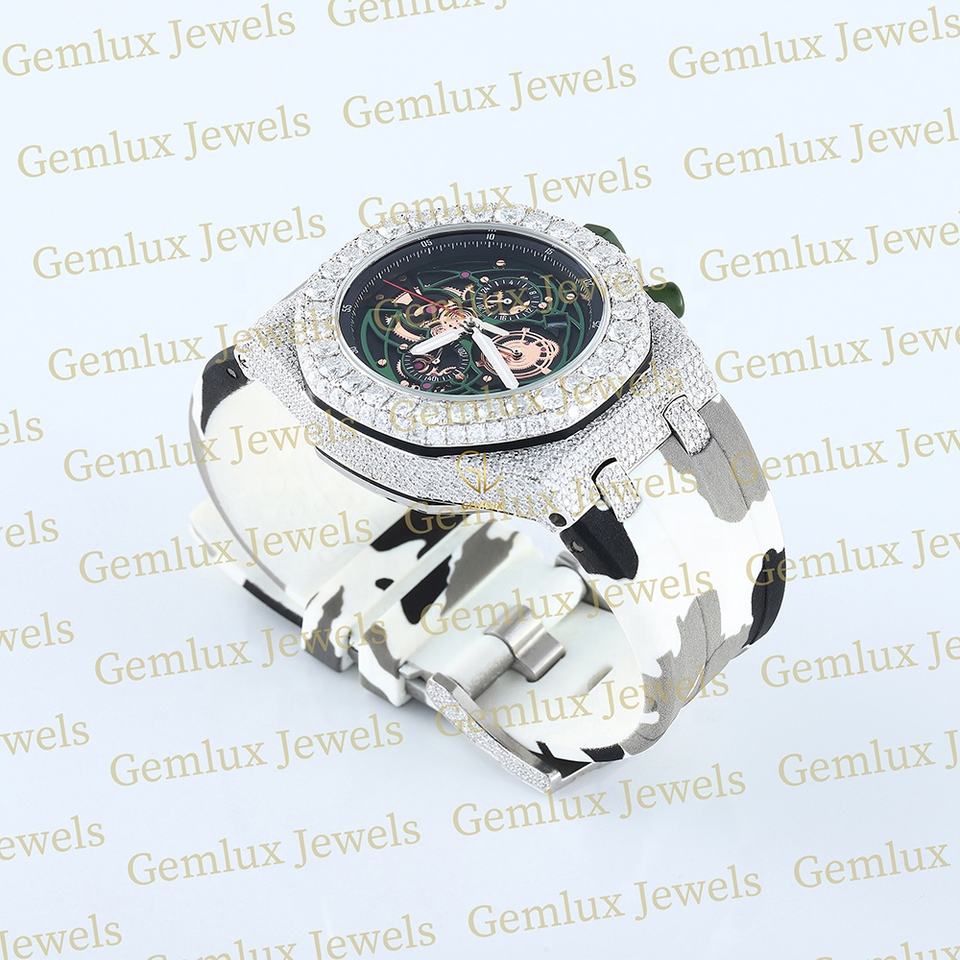 High Quality Pass Diamond Tester D VVS Fully Iced Out Moissanite Diamond Chronograph Camouflage Rubber Strap Watch For Men