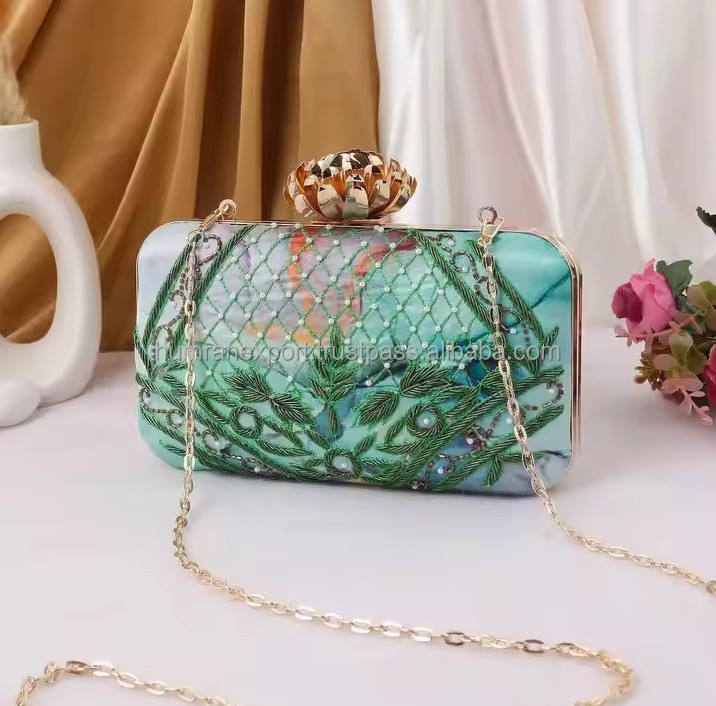 High Quality Pearl Embroidery Resham Luxury Fashion Clutch Bag for Evening Party Collection Best Seller 2024