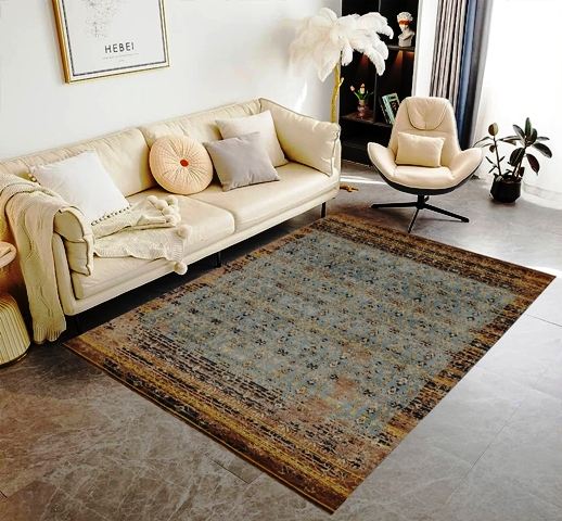 8x10 High Quality 10/10 Classical Rug:Persian Hand Knotted Gold Silver Wool 8x10 High Quality Wool rug