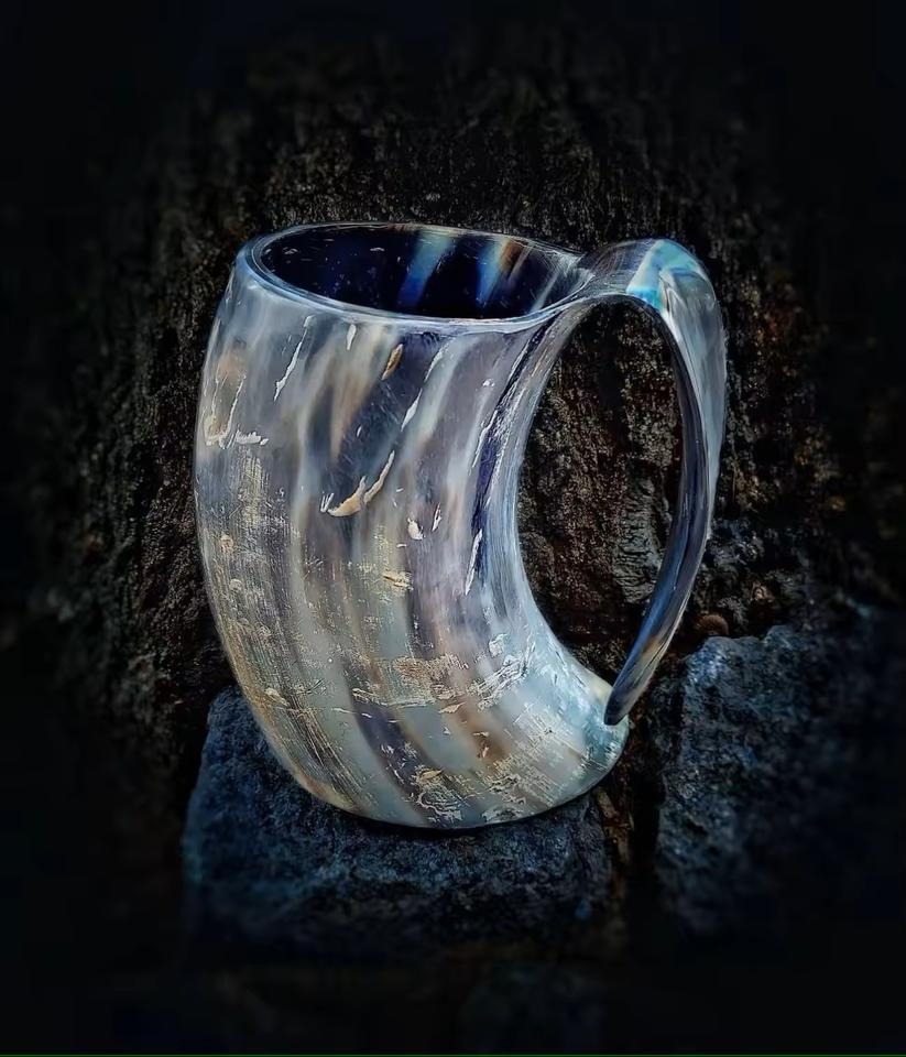 High Quality Personalized Natural OX Horn Viking Drinking Mug with Iron Stand Real Buffalo Horn Crafted From Crown Foods India