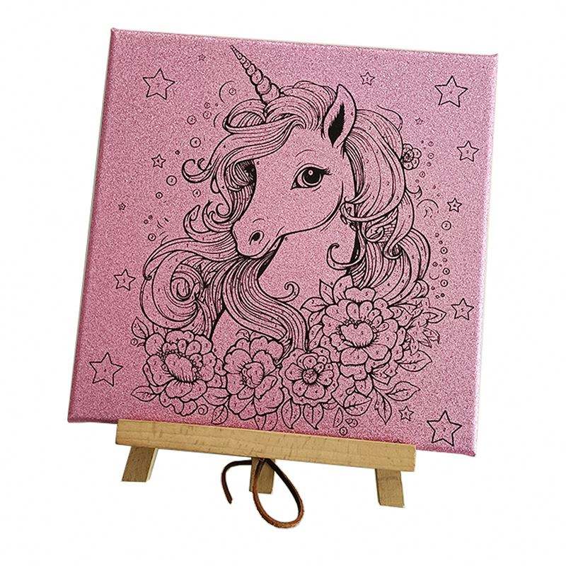 High Quality Pine Wood Frame 25*25 Cm Custom Design Single Color Printed Glitter Canvas Kids Painting Stretched Canvas